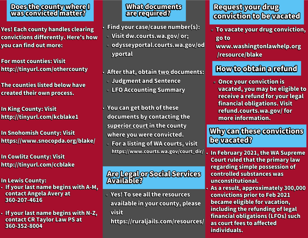 For Snohomish County: State v. Blake Information (Snohomish County Public Defender) & State v. Blake Refunds Information